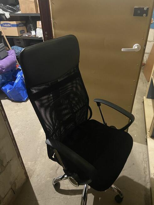 Wygodny, czarny fotel biurowy w bardzo dobrym stanie. Posiada oparcie z siatki zapewniające dobrą wentylację. Fotel jest ...