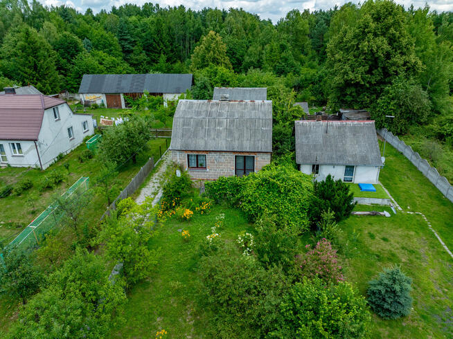 SIEDLISKO dzialka 1,23 ha szer.40m dom drewniany z poddaszem co sila/parter salonik z kominkiem otwarta kuchnia, ...