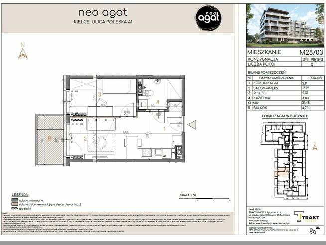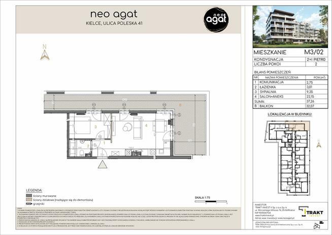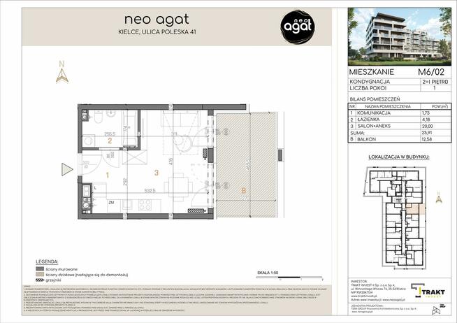 Apartament typu studio z możliwością sypialni - Neo Agat W ofercie sprzedaży mieszkanie o powierzchni 34,68 m² z ...